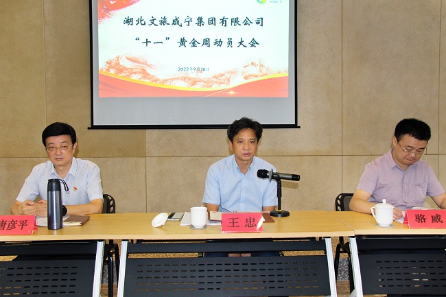 9月28日,咸寧集團(tuán)在蘿卜公社召開2022年“十一”黃金周運(yùn)營動員大會,咸寧集團(tuán)副總經(jīng)理駱威主持會議,董事長王忠出席會議并發(fā)表講話。集團(tuán)本部及運(yùn)營公司全體干部員工、九宮山公司職工代表參會。